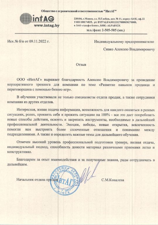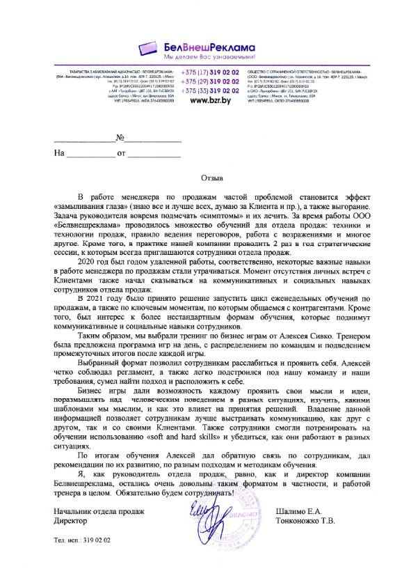 Рекомендуем Алексея как профессионального бизнес-тренера с качественным и ответственным подходом к своей работе